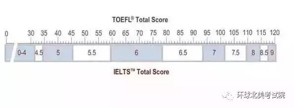 今年ETS发布了一个托福雅思成绩对比的小工具,从官方给托福雅思的对应关系划分了一个标准: