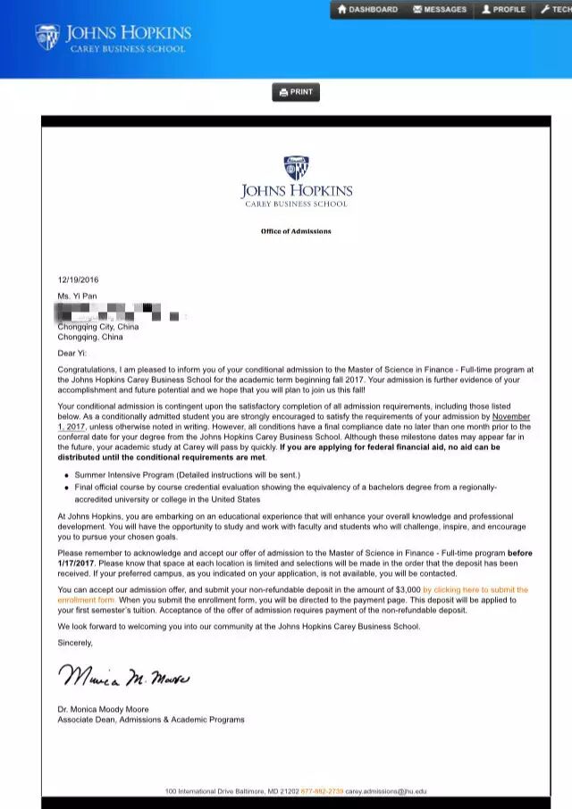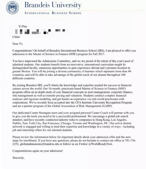 录取院校:约翰﹒霍普金斯大学、华盛顿大学(圣路易斯)、布兰迪斯大学、帝国理工学院