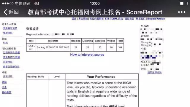来自暨南大学的潘怡同学,今年大四,她在重庆读了托福全程班,考出了104的好成绩,同时还考取了GMAT 710的好成绩。