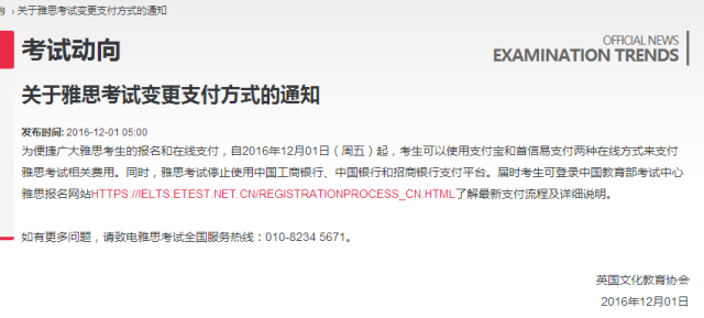 从12月的第一天开始,用支付宝支付雅思报名,复议等费用的功能正式开通!