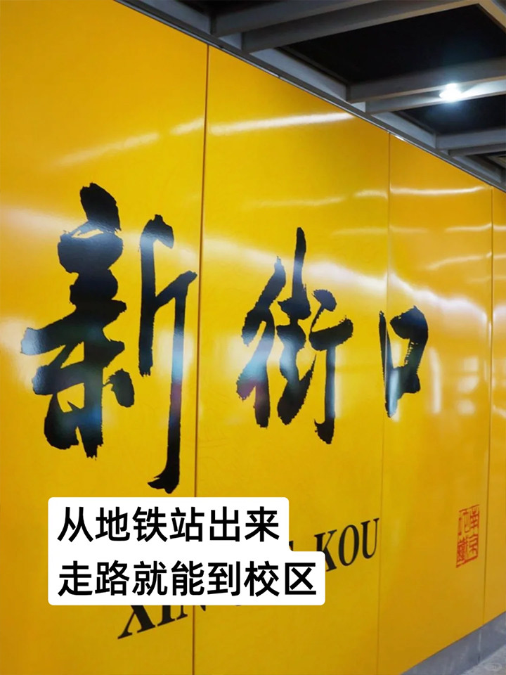 新街口地铁站出站,步行几分钟就到校区啦!附近吃的太多啦,下课后还能逛街约饭~