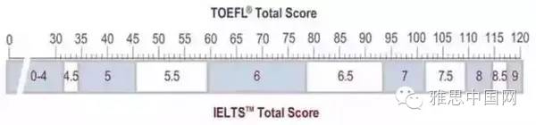 今年ETS发布了一个托福雅思成绩对比的小工具,从官方给托福雅思的对应关系划分了一个标准: