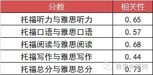 ETS通过对托福雅思相应分数对比,以下是四科相关性。