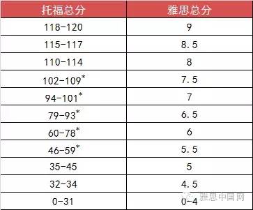 通过这份托福雅思对比尺,知道托福雅思的一个成绩即可推算出另一种考试相应的分数,比如雅思7分对应的托福分数就是94-102,8分对应的托福分数是110-114。