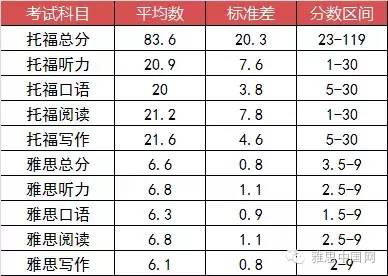 先前ETS发布的研究报告《Linking TOEFL iBT Scores to IETSScores: A Research Paper》,指明了TOEFL与IELTS在总分与单项上的分数对应关系。这份报告一共收集了1153份有效数据,通过对其分析,得出托福雅思之间的对应关系,以下是所有样本整体情况。