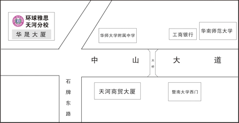 广州环球雅思学校 华南总校区地址:广州市天河区体育西路维多利广场B塔14楼(体育西站E出口)
