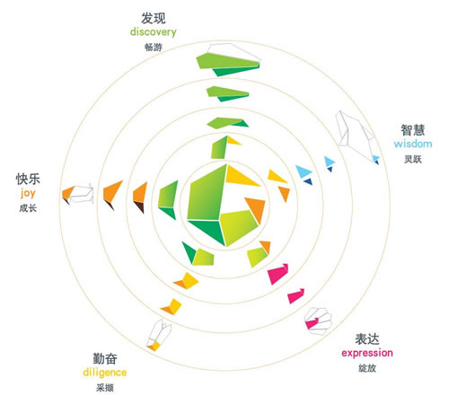 为丰富环球少儿国际英语视觉系统的表现力、增强整体形象的识别性,在本节中设定了辅助图形及其使用范围,以配合标准字体的推广、使用。其中规定的应用方法、尺度和组合方式为基础应用原则,实施应用时在不违反起基础原则的前提下,可依据实际需要,围绕标志、标准字体以及标准组合,灵活运用。