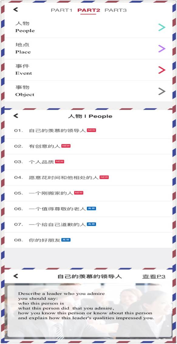 所以,最好的就是拿到已有的素材,根据自己的实际情况或者迸发出来的灵感稍加修改,就可以啦。可以根据自己的兴趣挑选,生成自己的素材库。挑选素材的时候不要一味挑选分高的,要结合自己的实际情况,因为如果你的水平只有6,你挑了7.5的素材,可能part2说的很顺,到了part3自己发挥的时候就暴露无疑,自行想象一下考官对于这种反差的表情以及他给出的分数吧……
