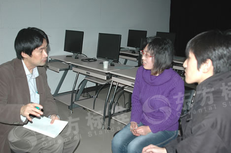 东方标准总裁助理陈峻先生向山根先生介绍了东方标准赴日国际软件工程师的授课情况以及东方标准在向日本软件开发行业输送人才方面所取得的成就,随后,陈峻先生及王琴芝女士陪同山根先生前往东方标准海泰教学区,参观了正在学习日语java课程的班级。在这里,来自日本的讲师在课堂上用日文讲授java课程,而学员也通过熟练的日语与老师及时交流,山根先生对学员们的日语水平大感意外,随机选择了两位学员,与他们进行日语对话。山根先生表示:“东方标准学员的日语非常流利,听力和表达能力都非常好!”