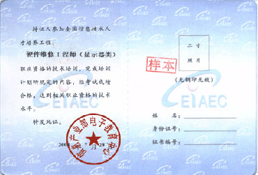 硬件维修工程师考试时间每月30日,请需办证的学员到咨询处报名,准备好1寸彩照2张,身份证复印件1张,考试费用300元。此证书全国通用,网上可以查询,另可办理营业执照及维修等级证书。证书查询网址:http://www.ceiaec.org |