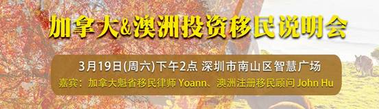 2016年3月19日下午2点,将于仁和移民总部深圳市南山区智慧广场D座4层咖啡厅举办加拿大&澳洲投资移民说明会,届时加拿大魁省移民大律师Yoann Normandeau和澳洲、新西兰移民律师胡康邦 John Hu将会出席,就加拿大&澳洲投资移民进行权威解析。欢迎有兴趣的投资者前来一探究竟。高端活动,免票参加,席位有限,烦请提前预约