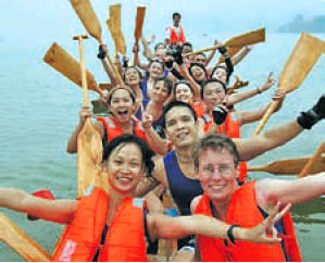 The 2008 International Dragon Boat Race taking place on June 8 in Qingpu District is open to every-one, even if you pick up a paddle for the first time on the day of the race. For many, it's a great chance to participate in a physical activity that's loaded with fun and sit in a boat with upwards of 18 people.