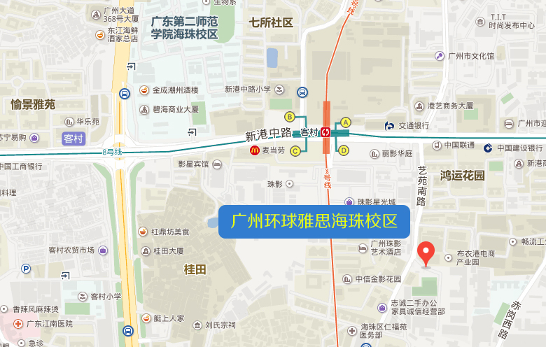 校区一:广州环球雅思海珠封闭校区(客村艺苑南路)